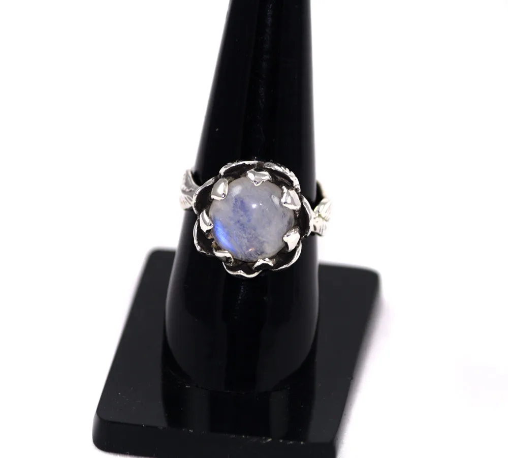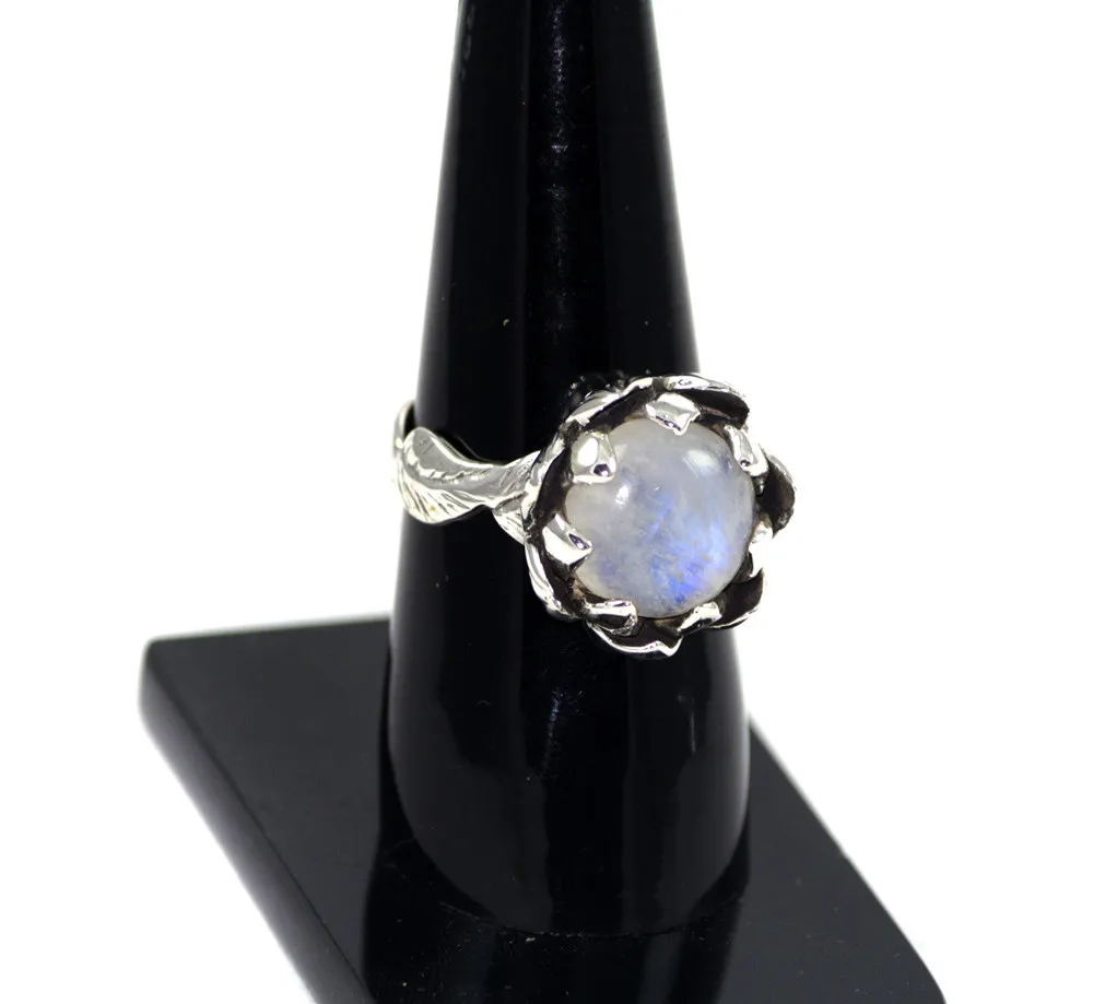 Moonstone Round Cabochon 925 Sterling Silver Rings
