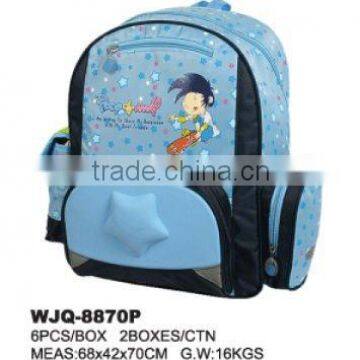 Popular ,Professional Design School bag(children's school bag),kids' backpack,(student's backpack bag,)(Student bag,),EVA PAD in back, EVA embossed in front pocket with reflective material,elastic mesh pocket for water bottle, shoulder trap with reflective material. EVA padding in front flap. silking priting pictures.