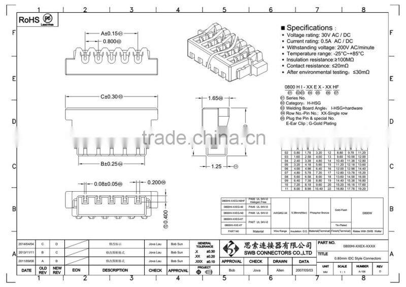 0.8mm Pitch IDC connectors JST SUR Plastic housing