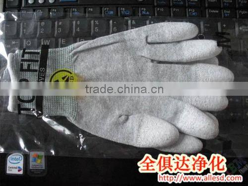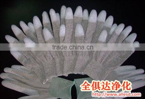 13G Nylon/Polyester PU Coating Carbon Fiber Gloves/PU finger coated ESD nylon gloves/Carbon fiber