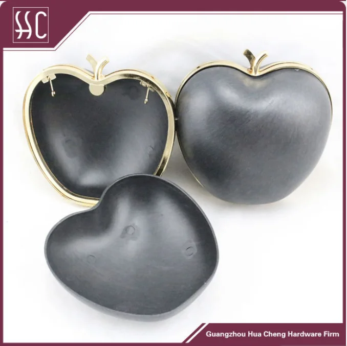 Zinc Alloy Apple Shape Metal Clutch Frame With Black Plastic Shall Box Purse Frame Supplier's Choice