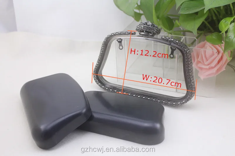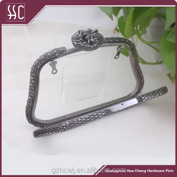 Leather Box Clutch Frames With Flower Knob Gunmetal Clutch Frame