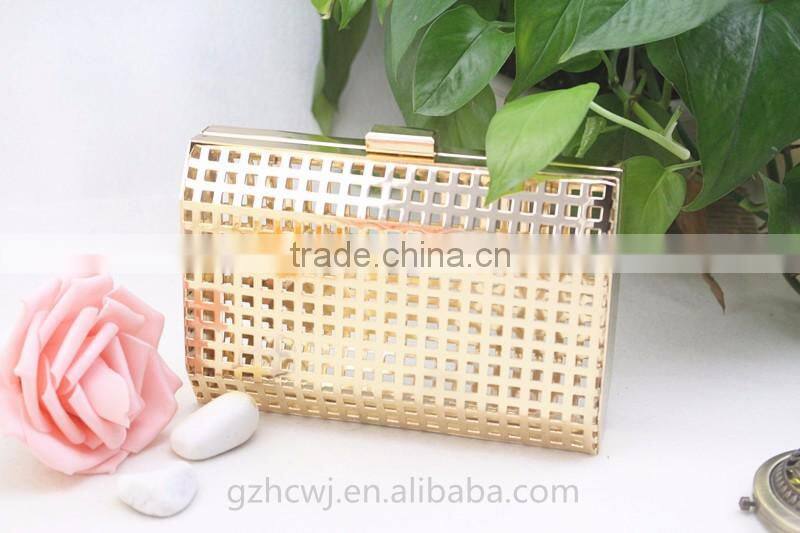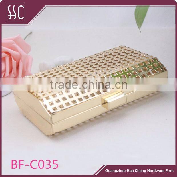 Rectangle Closure Metal Box Frame for Lady Bag, Shiny Gold Metal Clutch Manufacturer