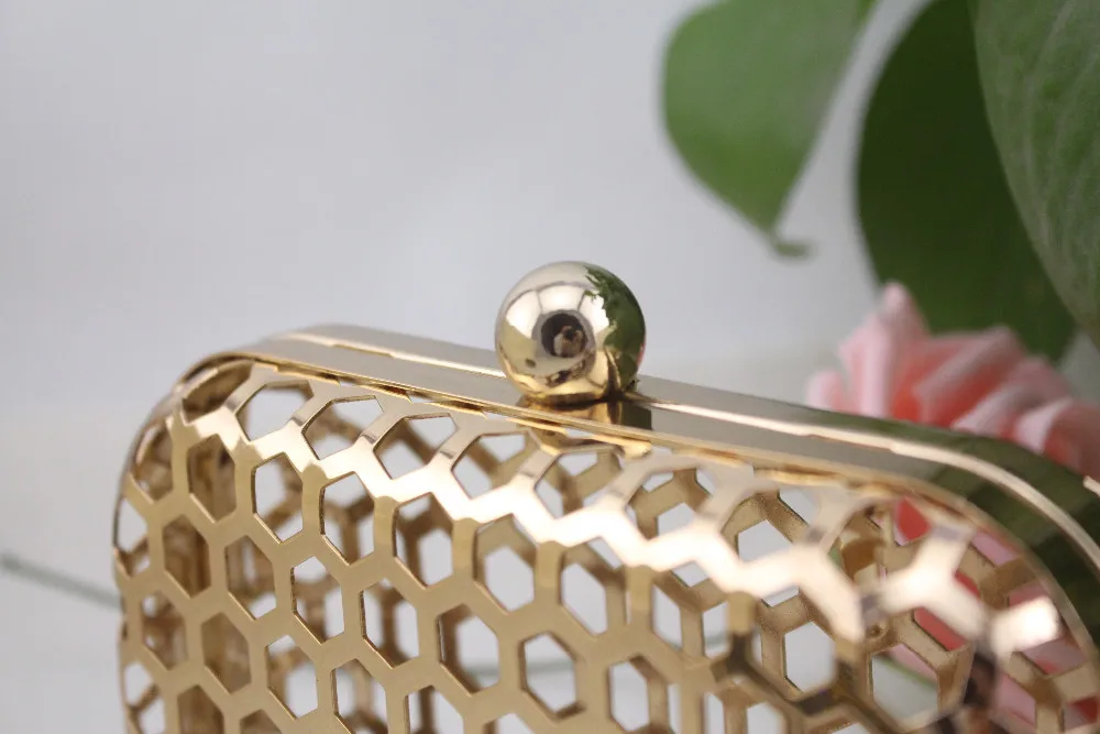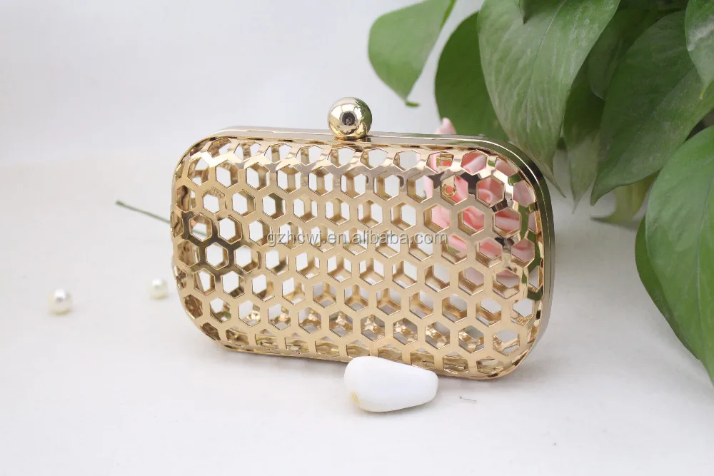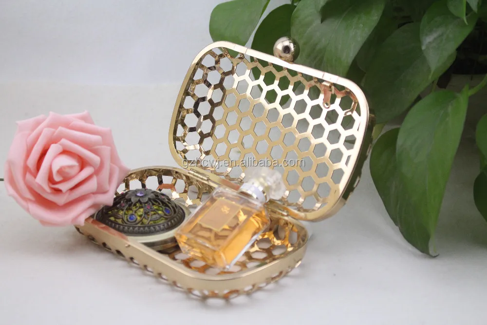 Fashion Metal Mesh Box Purse Frame & Fancy Hollow Clutch Party Handbag