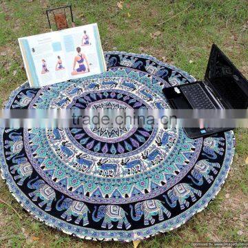 Large Elephant Mandala Round Roundie Wholesaler Indian Tapestry Table Cover Beach Throw Boho Roundie Round Mandala