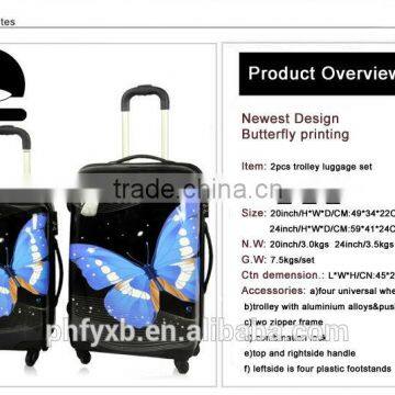 China 2015 with two size 20'' 24''Factory Fashion for Girls Butterfly Printing ABS&PC Carry on trolley luggage set for travel