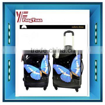 2015 China Factory Fashion Girls Butterfly Printing Abs pc Carry on Trolley Luggage Set for Travel Bag With Two Size 20'' 24''