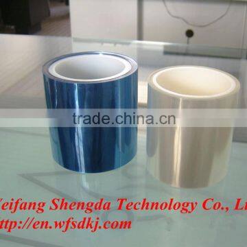 Shengda High Grade Transparent PET Silicone Coated Release Film/Liner are characterized by their outstanding release properties in combination with the known polyester film characteristics like extremely high internal strength, excellent dimensional stability, low heat shrinkage, excellent stiffness, high clarity and extreme surface smoothness. Product can be silicone coated on one or both sides to give a controlled release. It is used widely in pressure sensitive tape , die-cutting and medical applications.