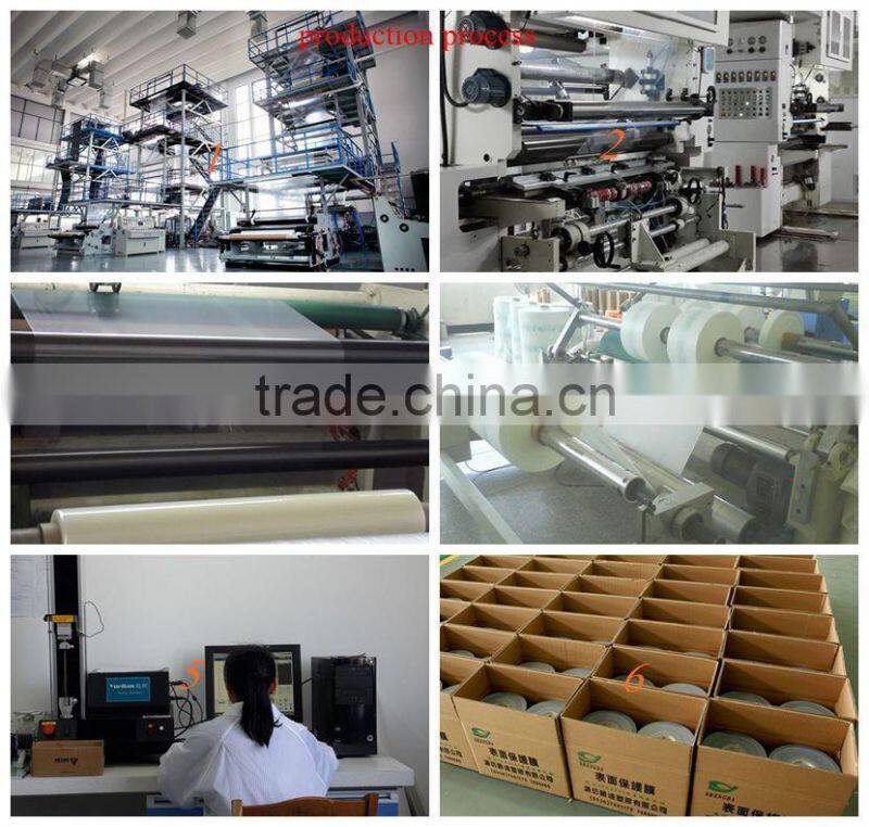 As a high technology company mainly engaged in research and development, manufacture of PE protective film and PET release film. Our company has more than 200 talented and rich experience workers, a 10, 000 grade purification workshop and 30 sets of advanced equipments. Certificated by ISO-90 01, SGS, TüV. Products can be custom in any color and any size to meet or exceed your requirements. We doing business with some international companies such as Haier, Kömmerling, Samsung, LG, quality is guaranteed.