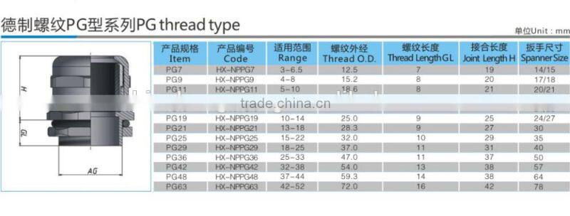 HX waterproof pg9 cable gland