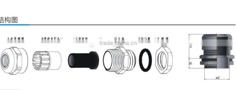 3. Function : Extremely easy installtaion,simply insert cable through the assembled gland and tighten gland locknut until cable is secured . Alcohol ,oil and common solvent .