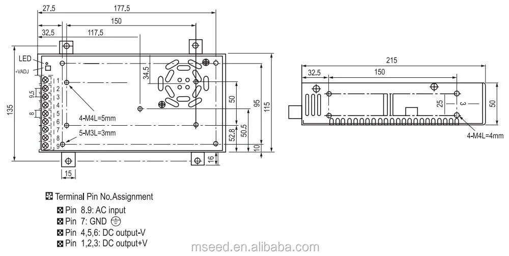 •Operation temperature high up to 70℃ 5v 30a switching led power supply