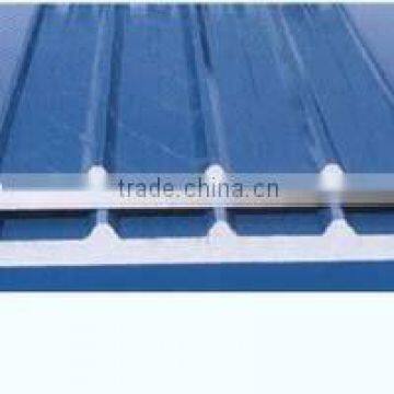 uses colour coating steel sheet as surface board, it uses self-extinguishing polystyrene, Polyurethane, crystal cotton and rock cotton as core material, it is over-light architectural board heated and pressed in continuous moulding machine with solidifying glue. It has excellences of small weight(1/20---1/30 of concrete roof), heat preservation, heat insulation(its heat conduction coefficient is 0.034W/mk), rapid construction speed(operate without humidity and needn't repeated fitment), is a new type protection structural material congregates bearing, heat preservation and water resistance. The product is used to purify factory roof, protect and purify product industrial factory, storehouse, refrigeratory; Large-span roof board, adding layer for original building, temporary office, store, market and sentry box.
