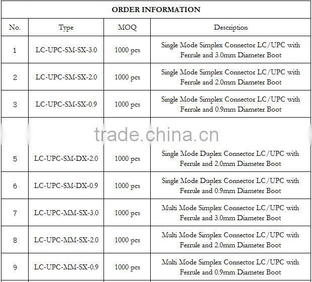 Single Mode Simplex Connector LC/UPC With Ferrule and 0.9mm Diameter Boot