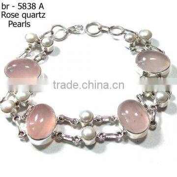 Solid 925 Sterling Silver Jewelry Rose Quartz Gemstone Bracelet
