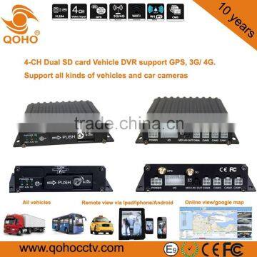 4-CH Dual SD card mobile DVR support GPS and 3G.