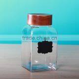 Square Glass Jar With Wooden Lid and Black Sticker Set of 3