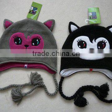 Children's Little Cat knitted Beanie with Braid1.OEM Accepted