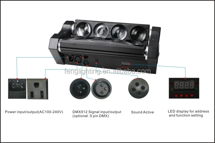 4 Programmable Led Lamps Addressable Rotation Super Brightness Moving Head Beam Lights