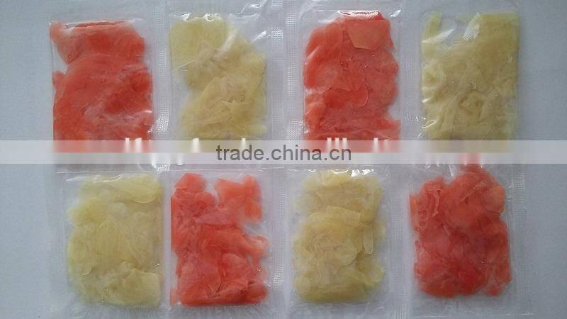 We can supply sushi ginger with all kinds of packing, such as : 1kg/bag, 250ml glass bottle, 500g/bag, 20lb barrel, 5g mini bag 5 lb jar etc.