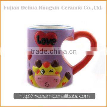 Hand-painted 3D ceramic cartoon animal giraffe strip mug