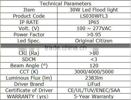 3, Optical Parameters of 30W Led flood light: