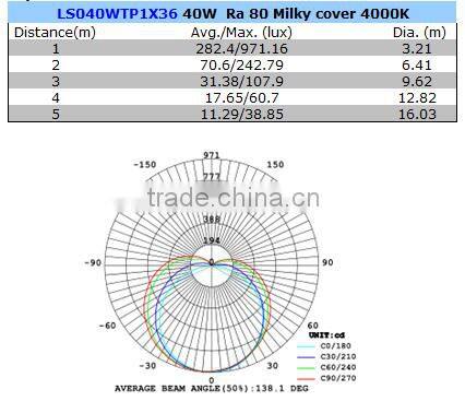 3, Optical Parameters of 40W tri-proof light: