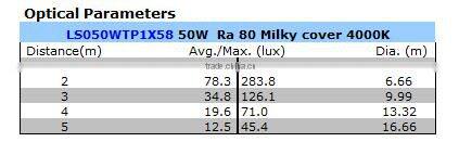 3, Optical Parameters of 50W tri-proof light: