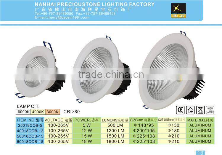 Indoor Led Lighting Aluminum Body 12W Cob Led Downlight 30 Watt