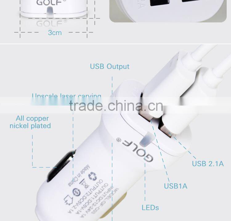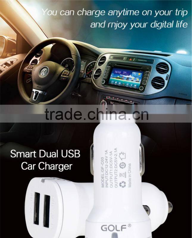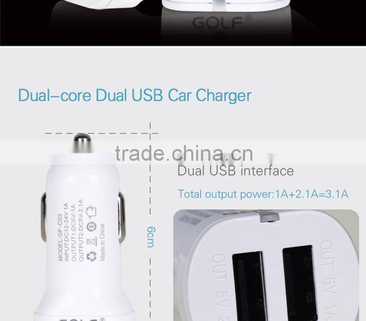 - Pure whiteness,Nice and fluent design dual USB Car Charger .
