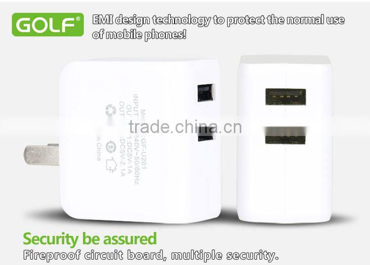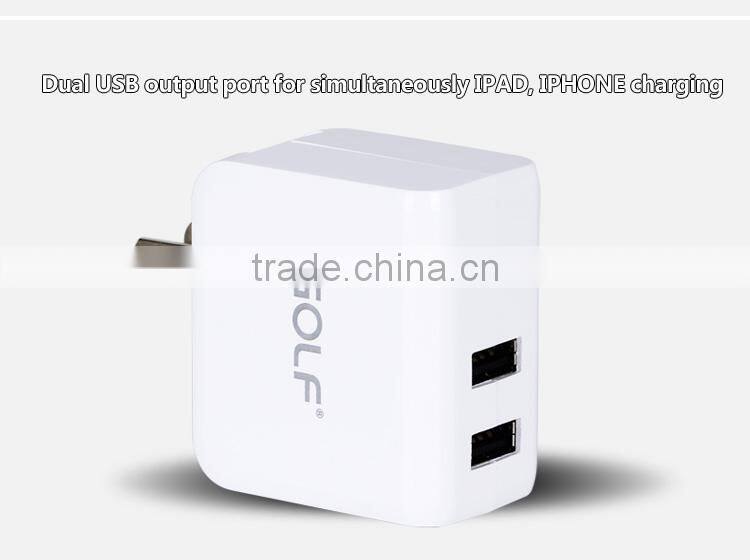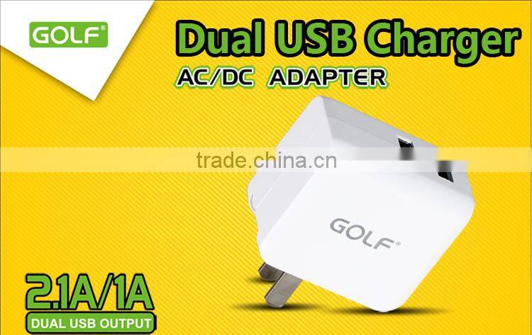 Golf Cellphone Charger Dual USB Cell Phone Charger 5v 2.1a/1a Good Quality Mobile Phone Charger