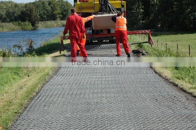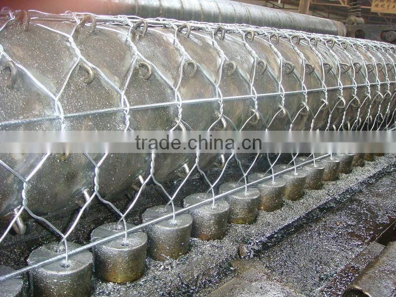 Road mesh is one of double twist hexagonal woven wire mesh with a transverse rod woven into the mesh.It is made from heavily zinc coated galvanized or galfan coated wire, and therefore can easily be cut with a concrete saw or equivalent.