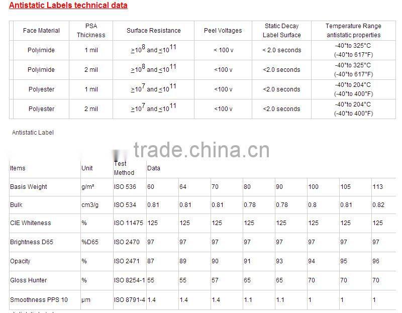| Type | Other, PP synthetic paper, semi gloss paper, PET label | Feature | Other, Antistatic Label Materials , high temperatures resistance | |