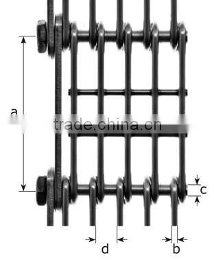 Eyelink belt is also called a wire loop belt as the belt consists of bent wire loops which are connected together with cross rods. Eyelink belts are manufactured with reinforcement plates at the edges and inside the belt if required. Eyelink belt can also be manufactured with flights and/or high edge plates. The drive wheels or drive rollers have milled grooves where the driving takes place across the full width of the belt with positive driving. In order to increase the opening between the wire loops, the eyelink belt can be provided with distance springs or bushes. The belt Multi are manufacture with welded wires underneath to obtain the opening between the loops. These belts with open area are used in cooling and drying systems where this is of great advantage as it promotes the circulation of the air.