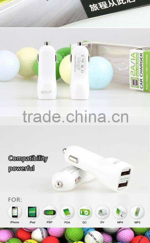 china new product GOLF best selling High quality car charger,promotional dual car charger