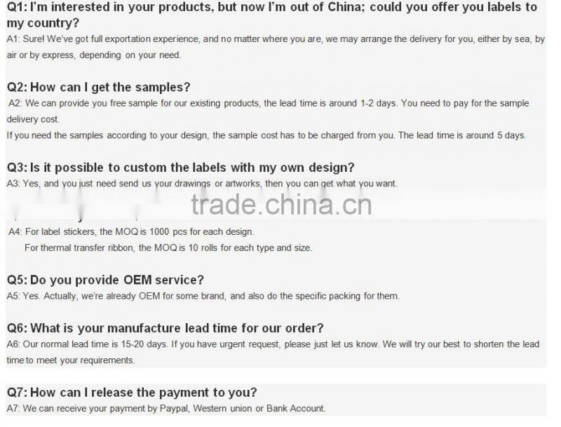 | 14. Price terms | We can provide FOB /EXW/CIF price. eco-friendly film battery label | ||