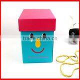 Colorful Big Smile Face Active Red Blue Square Corrugated Storage Gift Box With Long Yellow Ribbon Wholesale