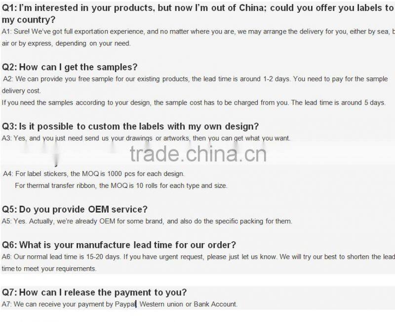 | 13. Price terms | We can provide FOB /EXW/CIF price art paper tyvek label art paper tyvek label | ||