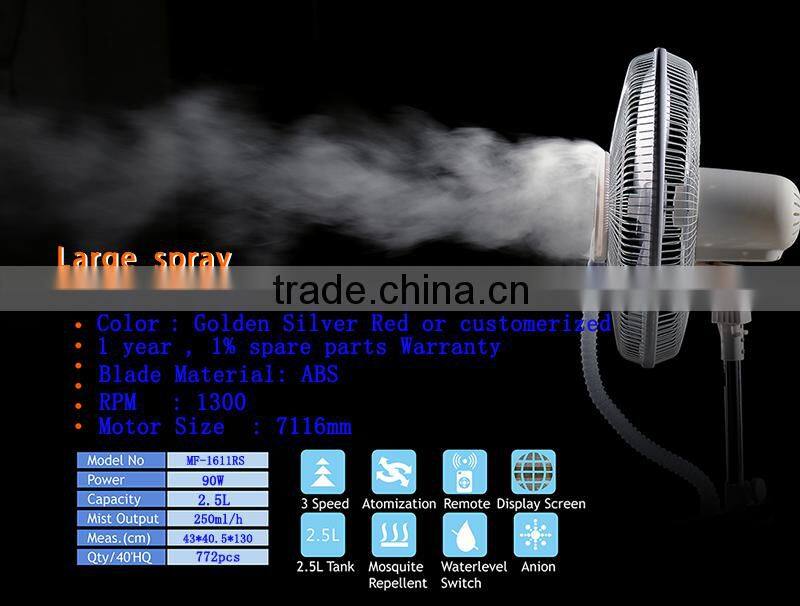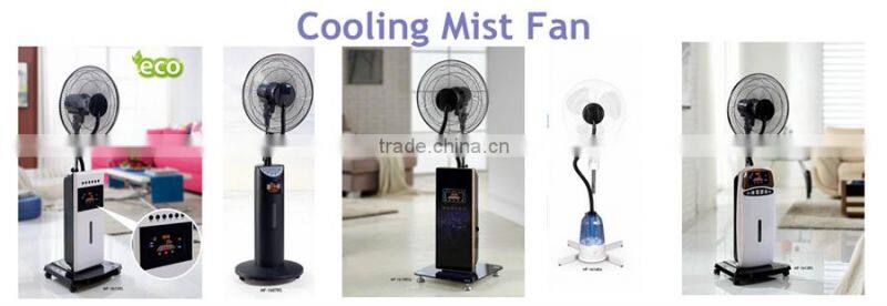 Misting fan is a new home appliance, which is integrating the double functions of normal electric fans and ultrasonic humidifiers. You can use it as a normal stand fan, or use as a cool mist humidifiers. When use together, you can enjoy cooler wind with a little humidity, which can makes you feel more comfortable compared with other fans.