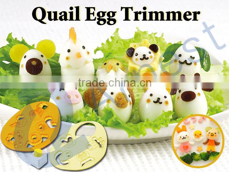 This kit is an easy tool for making cute animals out of quail eggs. By assembilng your cutouts, you can create rabbits, cattles, chicks, turkeys, frogs, lions and more. A nori puncher is also included for adding cute expressions to your creations! Hand-wash only.