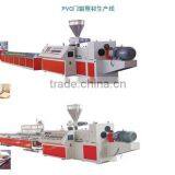 PVC powder+additives----------Mixier machine---Spiral loader-----Force feeding-------SJSZ twin screw extruder------------Extrusion mould—Vacuum forming tank—Printer---Haul-off machine---Cutter----Stacker
