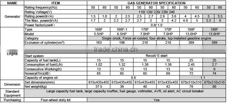2.2KW LPG and Gasoline Generator 110V 60Hz
