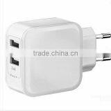 CE FCC ROHS Dual Usb EU Plug Travel Charger 24W for IPhone/iPad and Samsung