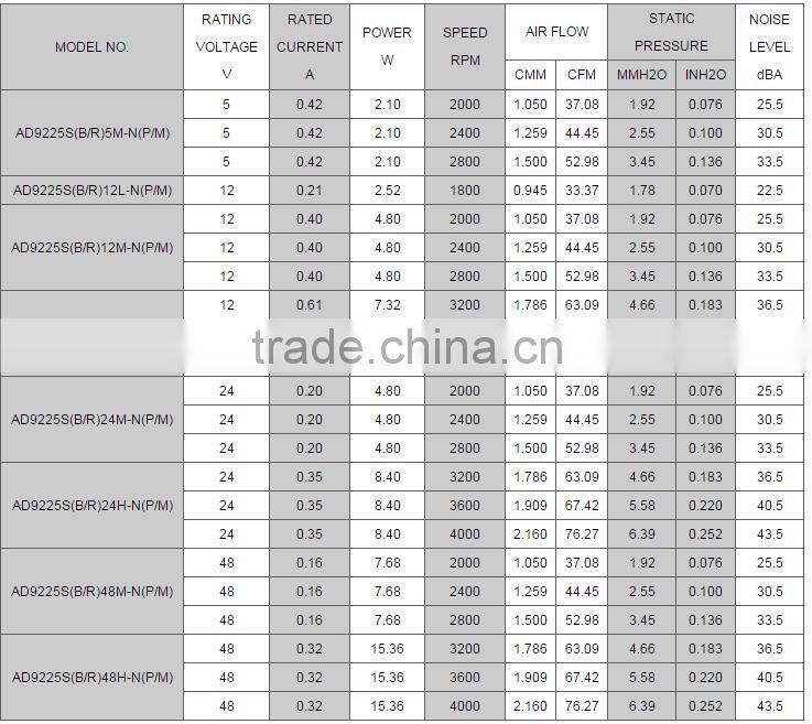 *fan size(mm):