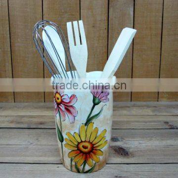 Wholesale Handpaint Daisy Ceramic Untensil Holder With Spoons