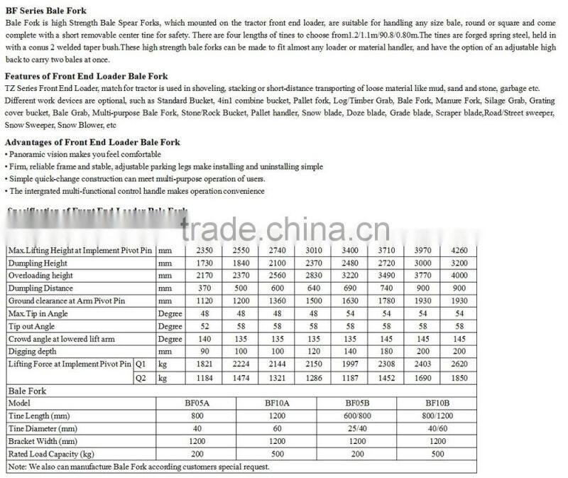 We manufacture different type and size Bale Fork to meet different customers' demand: