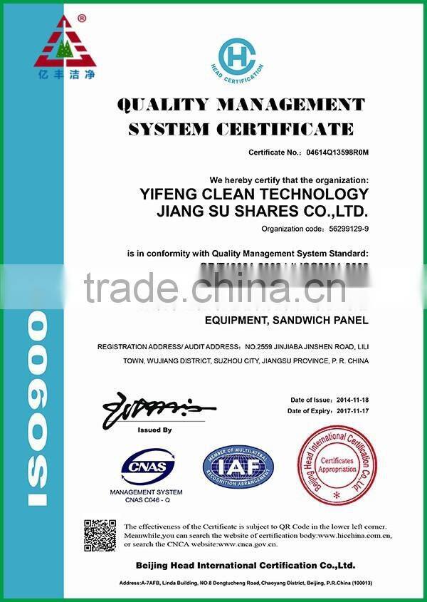YIFENG CLEAN TECHNOLOGY JIANG SU SHARES CO.,LTD is a professional manufacturer engaged in the research,development,production,sale and service of laboratory furnitures,clean rooms,automation control and Gas pipeline.We are located in Suzhou City,Jiangsu province,with convenient transportation access and beautiful environment.Two hours'drive form the Pudong International Airport (PVG).Dedicated to strict quality control and thoughtful customer service,our experienced staff members are always available to discuss your requirements and ensure full customer satisfaction.In recent years,our company has introduced a series of advanced equipment including NC Punch,CNC Bending machine,NC Carving machine,Sealing side machine and shearing machine.In addition,we have obtained SGS,ISO9001 certificates and the Outbound bamboo grass products production enterprises.Selling well in all cities and provinces around China,our products are also exported to clients in such countries and regions as Singapore,Nigeria,Cuba,Pakistan,Vietnam,Ethiopia, Kenya,Bangladesh,Uzbekistan,Fiji.Research and manufacture development is the purpose we always follow for years,and also enjoy providing customer-oriented services,in particular any ODM and OEM business.