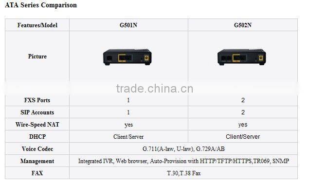 Flyingvoice G502N 2 FXS grandstream ata compatible is the newest 2 FXS ATA (Analogue Telephone Adapter) products in Flyingvoice, which enables customers to register to different SIP Proxy server, IP PBX and establish up to 2 concurrent VoIP calls for more flexibility in the voice communication.