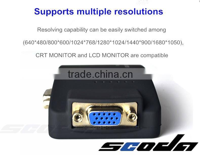 Resolving capability can be easily switched among (640*480/800*600/1024*768/1280*1024/1440*900/1680*1050),CRT MONITOR and LCD MONITOR are compatible。
