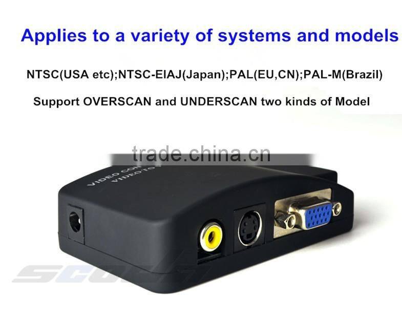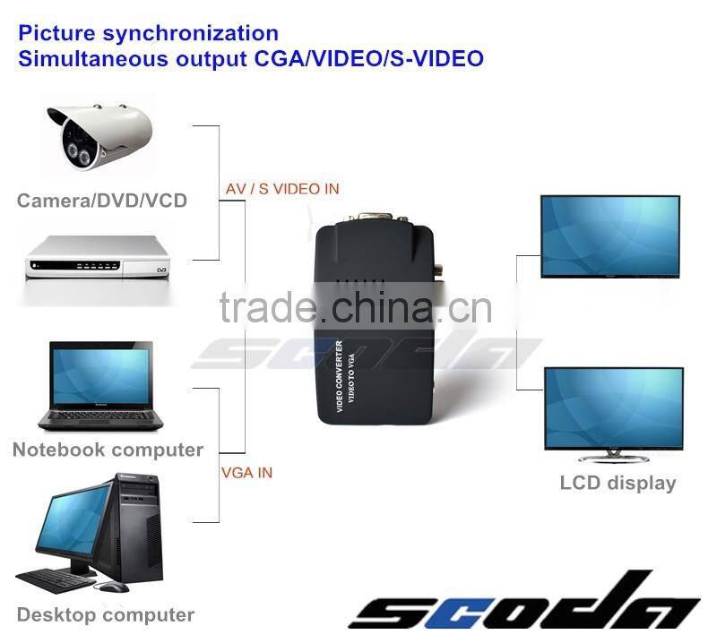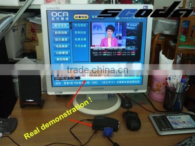It can change the signals of“s” terminatorofvideo into VGA signals line-by-line. Let your monitor change into flicker free display.Flicker free displayis good display. It also can be connected to VCD/DVD/Webcam/set-top boxetc. And make your monitor be like digital TV.